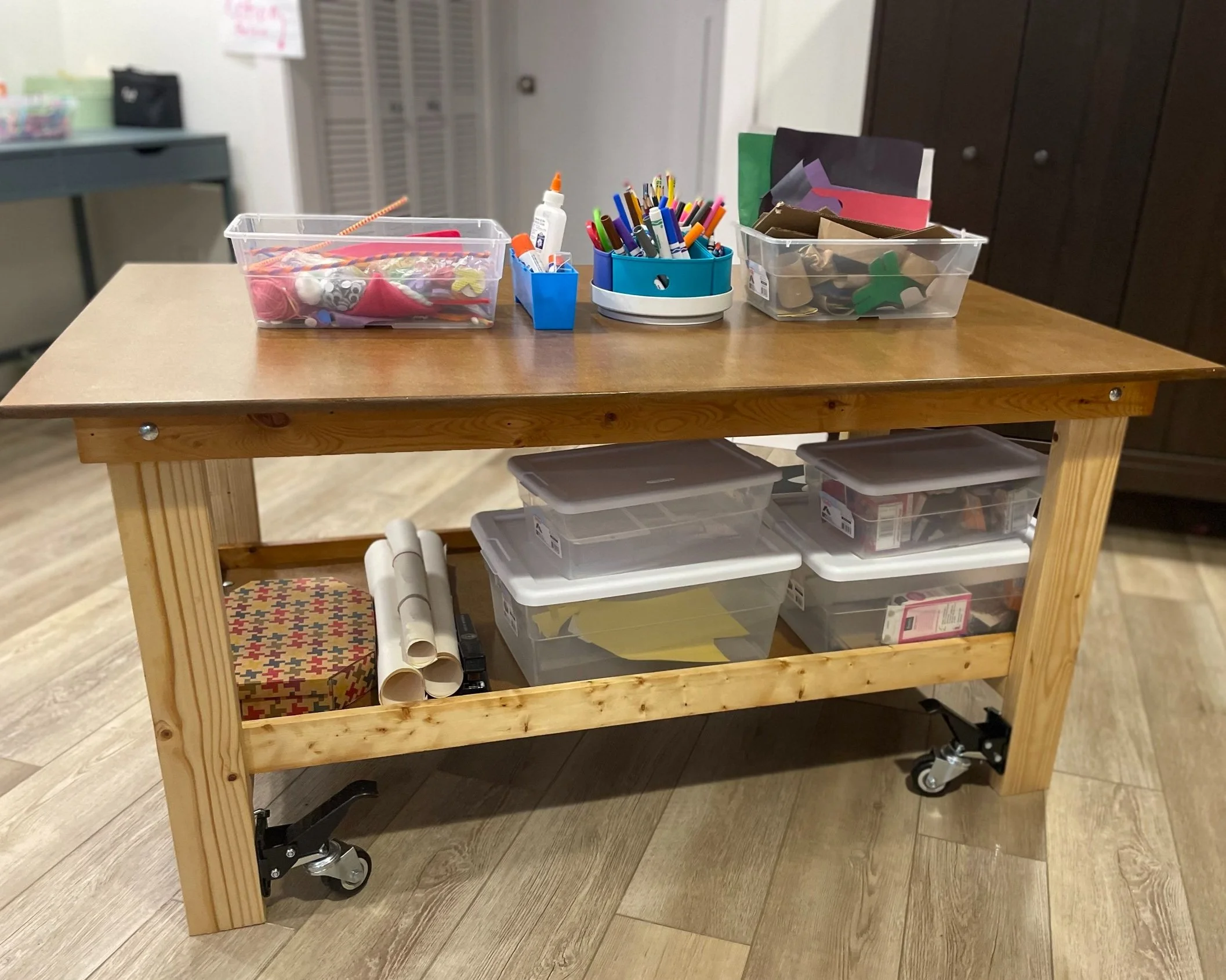 Plans for this DIY maker table and more about setting up a maker space under the setting up tab.